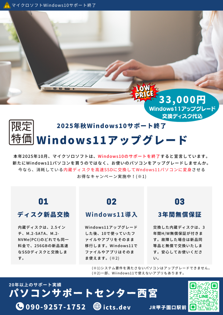 本年2025年10月にWindows10のマイクロソフトによるサポートが終了します。